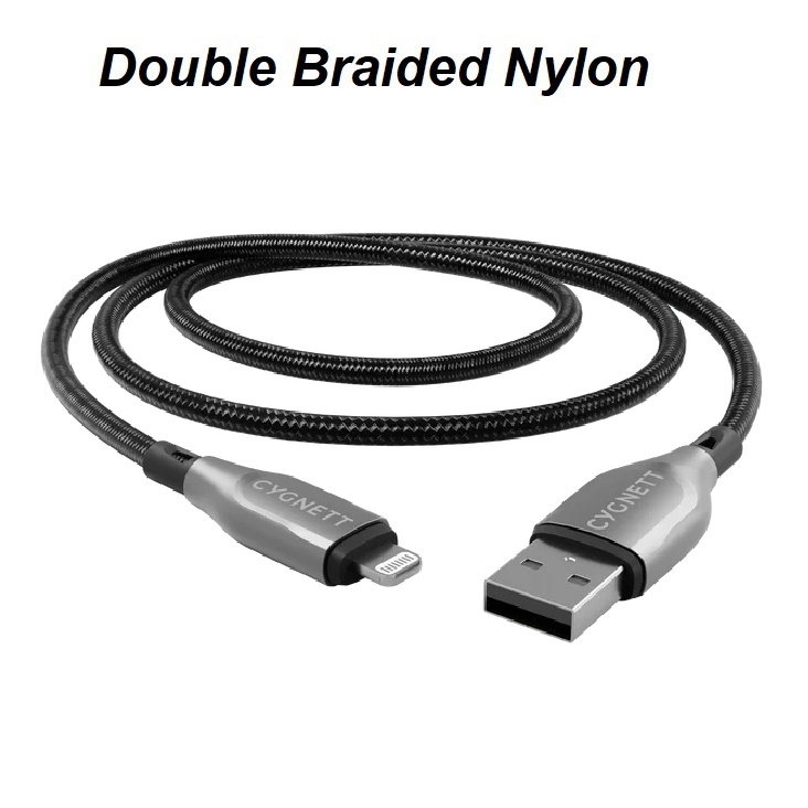 Cygnett Armoured Braided Lightning to USB-A (2.0) (2M) Cable – Black (CY4660PCCAL), 2.5A/12W, 480Mbps, Turbo Charge, Apple iPhone, 5 Years Warranty