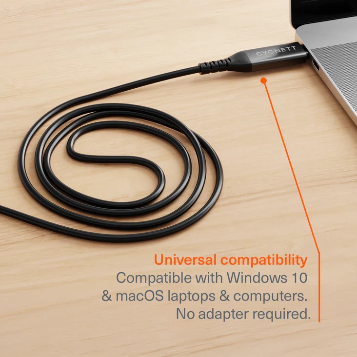 Plug the USB-C connection straight into your laptop. Supports USB 3.2 Gen 1 and USB 2.0 connections.