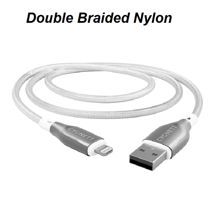 Cygnett Armoured Braided Lightning to USB-A (2.0) (2M) Cable – White (CY4661PCCAL), 2.5A/12W, 480Mbps, Turbo Charge, Apple iPhone, 5 Years Warranty