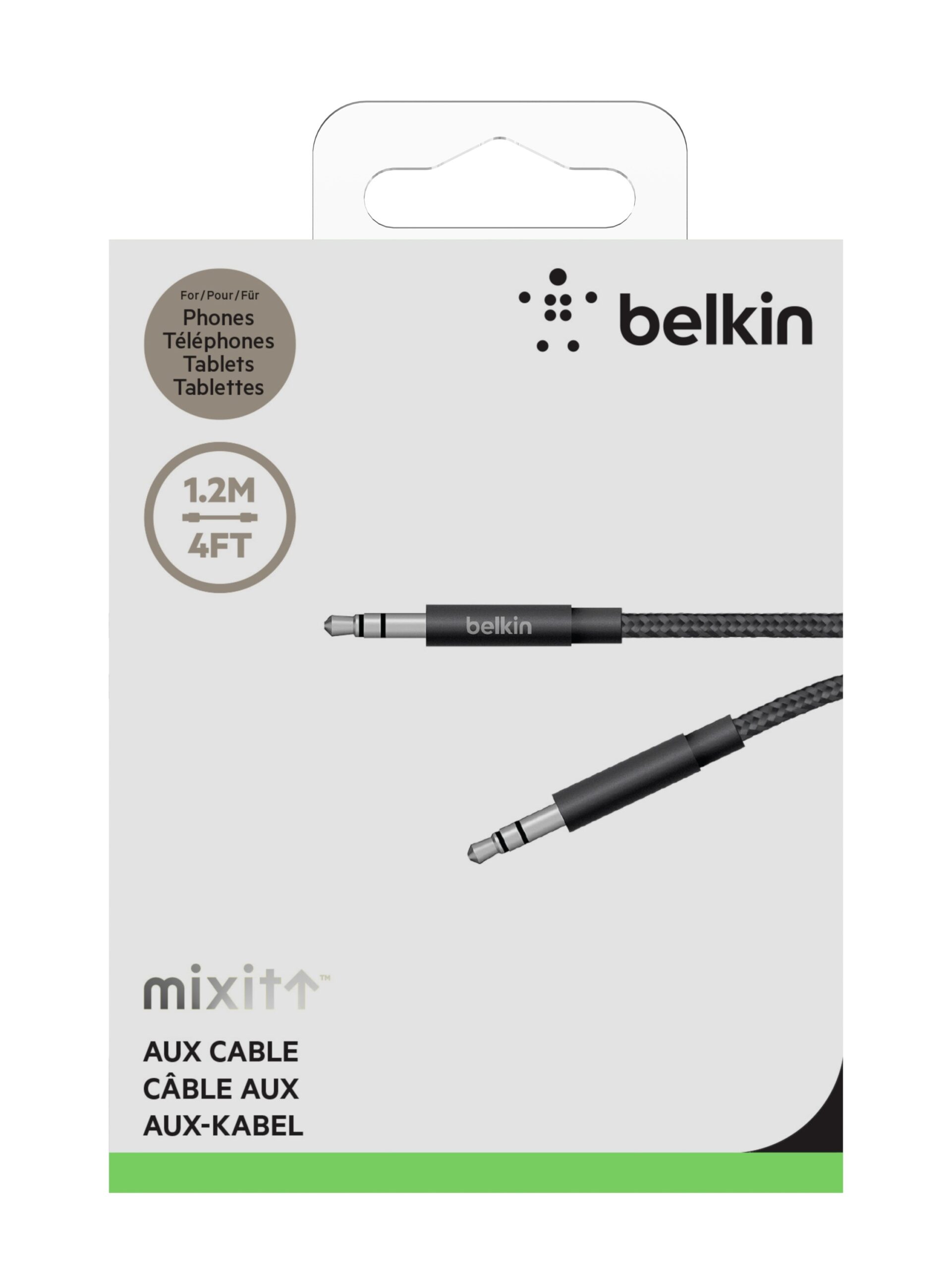 Belkin MIXIT Metallic AUX Cable (1.2M) – Black (AV10164bt04-BLK), Versatile, Sleek & Stylish, Durable, Easy to Carry, 2 Years Warranty