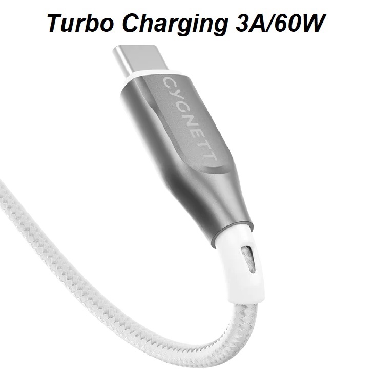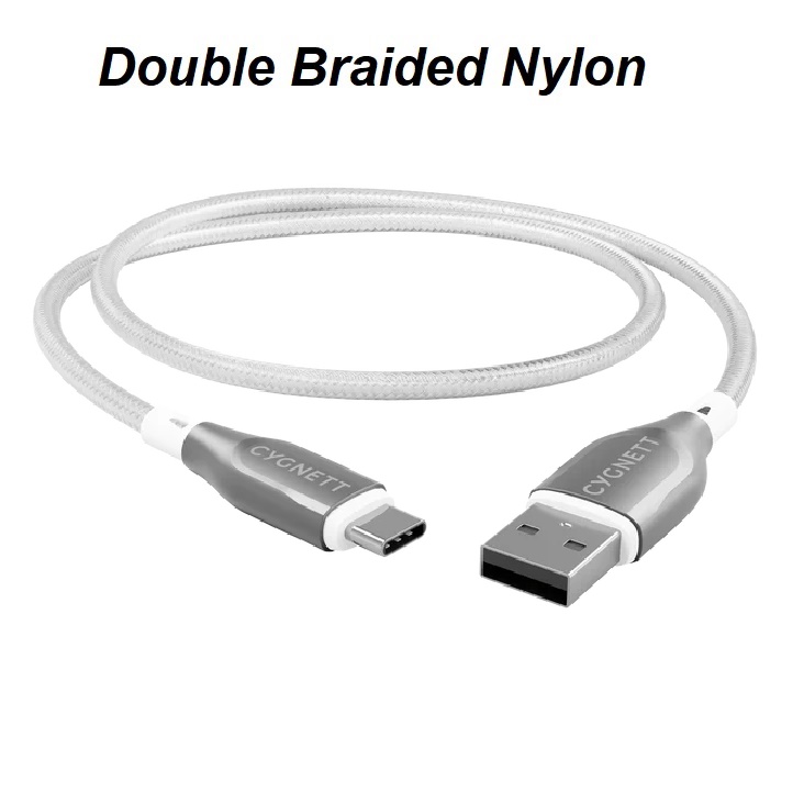 Cygnett Armoured Braided USB-C to USB-A (2.0) Cable (1M) – White (CY4682PCUSA), 3A/60W, 480Mbps, Turbo Charge, Best for Laptop, 5 Years Warranty