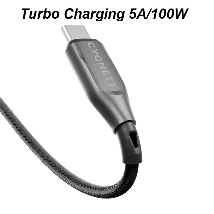 A fast charging USB-C cable, supporting up to 5A/100W turbo charging, this cable can power up your USB-C laptop, tablet or smartphone at up to 100W optimal speeds. This cable also allows you to experience up to 480Mbps transfer speeds, so you can quickly sync photos, music and data to your USB-C enabled devices. Designed with double braided nylon and strain-relief, to minimize fraying, this cable has been tried and tested to withstand wear and tear. This ultra-reliable cable comes with 5-year warranty.