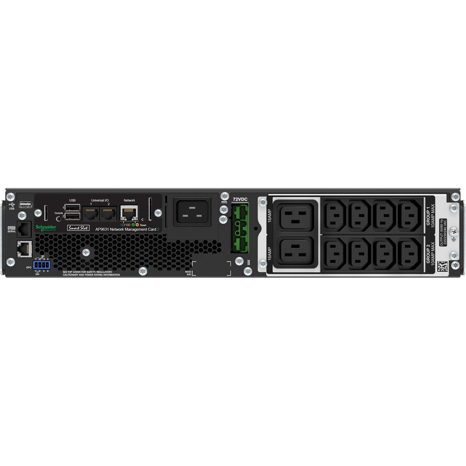 APC Smart-UPS 2200VA/1980W Online UPS, 2U Rackmount, 230V/16A Input, 2x IEC C19 & 8x IEC C13 Outlets, Lead Acid Battery, W/ Network Card, W/ Rail Kit