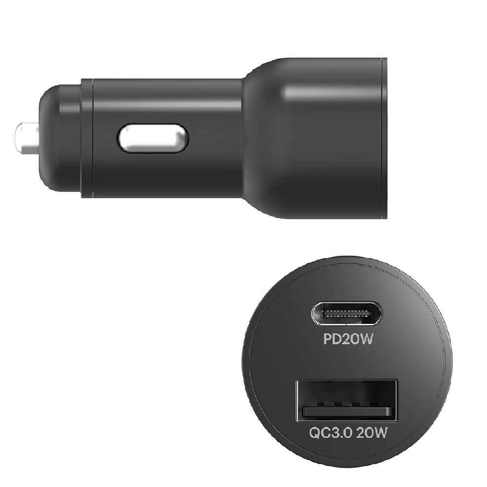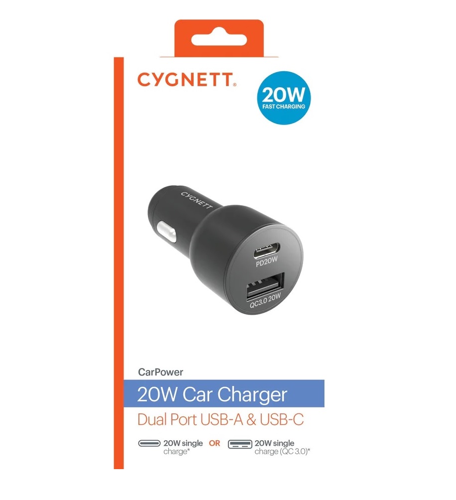 Cygnett CarPower 20W Dual Port Car Charger with 20W USB-C PD + 20W QC 3.0 - Black (CY3637CYCCH)