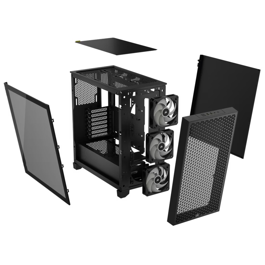 Corsair 3000D RGB AIRFLOW Mid-Tower PC Case - Black, ATX, 360 GPU, 170 CPU cooler, 220 PSU, 3x AR120 RGB, 2x USB-A 3.2 Gen 1