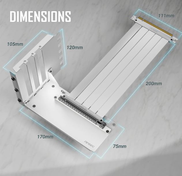 Antec PCIE-4.0 Riser Cable (200mm White) High Quality Gold Plated and Shielded PCB. Stability and Perforamnce 90 / 180 Degrees Flexible Cable (LS)