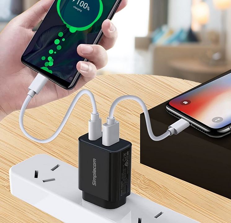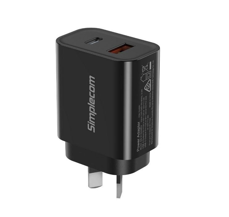 Simplecom CU220 Dual Port PD 20W Fast Wall Charger USB-C + USB-A for Phone Tablet