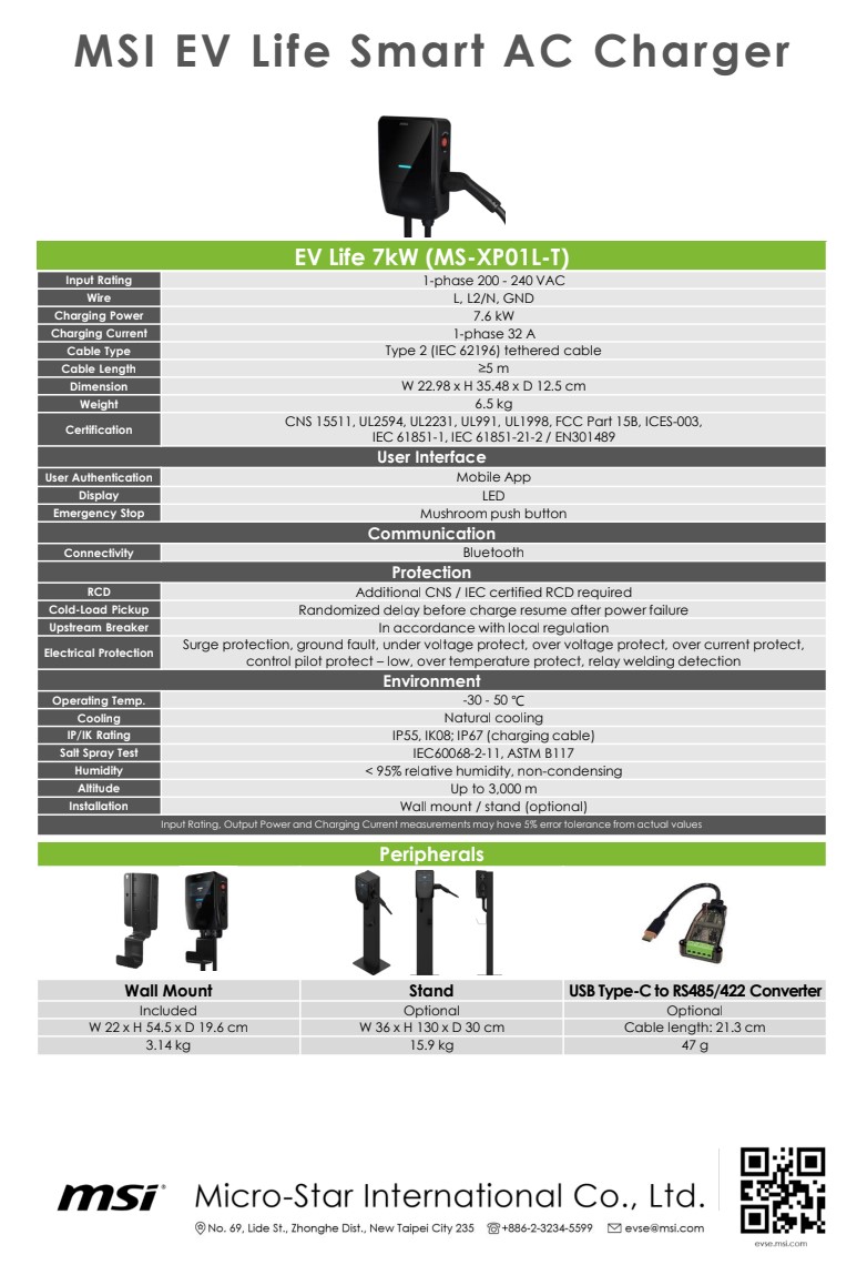 MSI Smart EV Charger EV Life