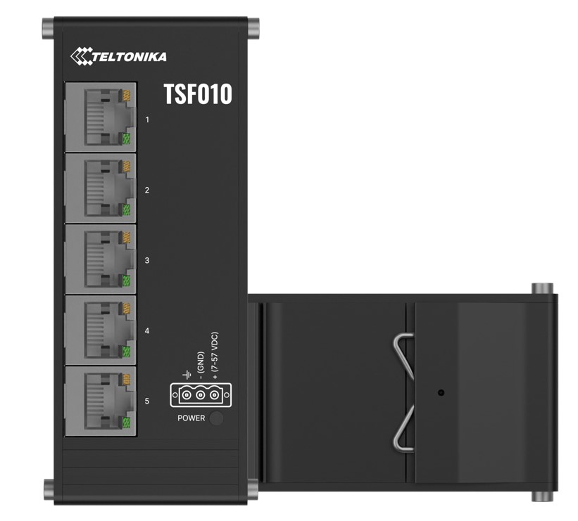 Teltonika TSF010 Flat Ethernet Switch, 3-Pin Power Input, Flat and Compact Design, Plug-and-Play, 7-57 VDC, PSU excluded