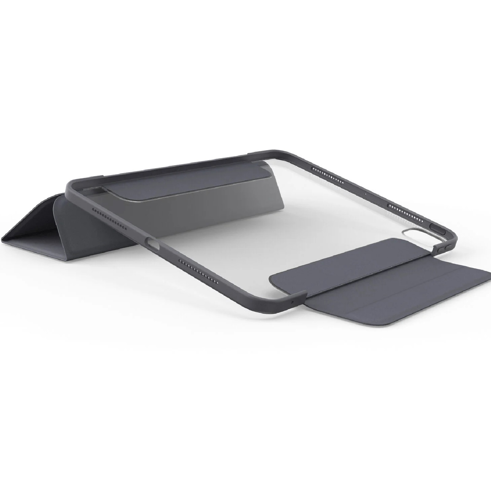 Clear folio iPad Pro 11-inch (M5/M4) case protects against drops and scratches and converts into multiple positions for hands-free typing and viewing. The folio’s microfiber lining guards the screen and holds tight with magnets, which also activate sleep/wake modes for quick-start functionality and battery preservation.