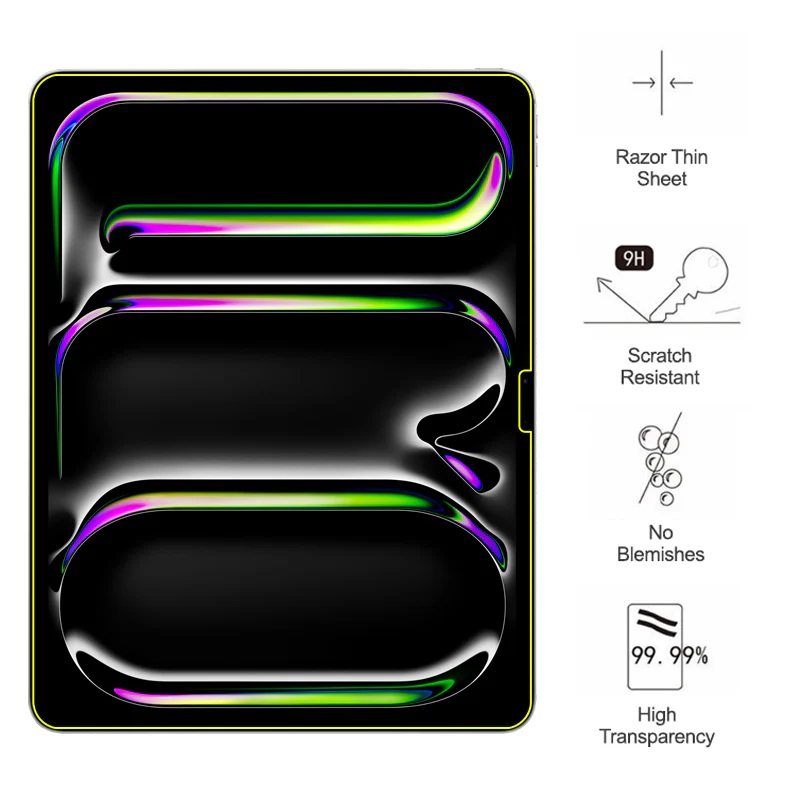 The 9H Tempered Glass Screen Protector for Apple iPad Pro (13-inch) models (see compatibility below) features a tough defensive sheet with 2.5D arc edge and manufactured from premium multi-layered crystal clear glass.