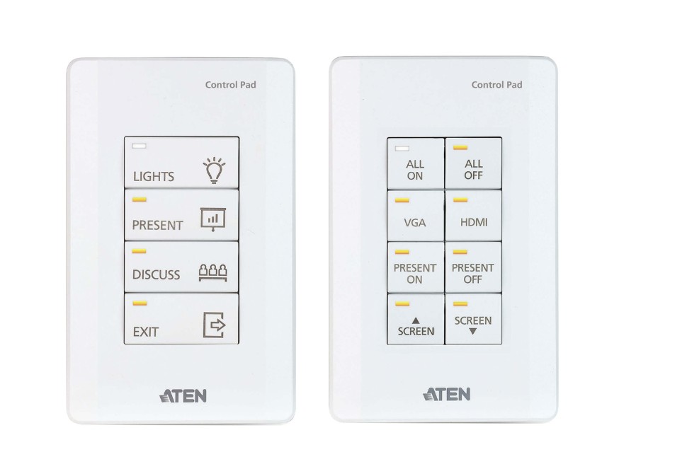 Aten 8 Button Control Pad with 1 Gang US wall plate, 2 RS232, 2 relay, 1 Digital I/O and Ethernet connection support, 14 button layouts available