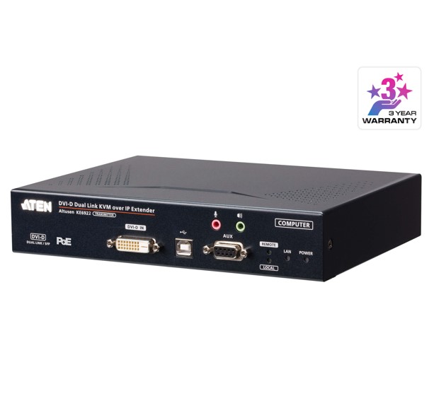 Aten DVI Dual Link KVM over IP Transmitter with DC Power + Power over Ethernet support, supports up to 2560 x 1600 @ 60 Hz, USB and 3.5mm Audio input