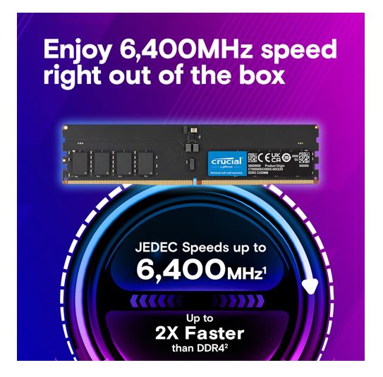 Crucial 128GB (2x64GB) DDR5 CUDIMM 6400MHZ CL52 Desktop PC Memory for Intel Core Ultra Processors AI PC
