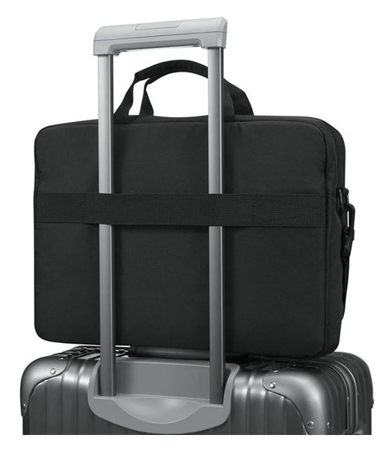 Convenient luggage strap on back panel for travel and commuting