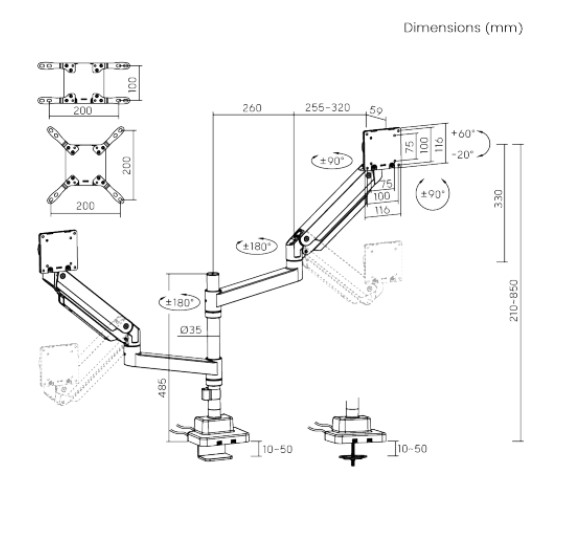 VESA Compatible: 75x75,100x100,100x200,200x100,200x200