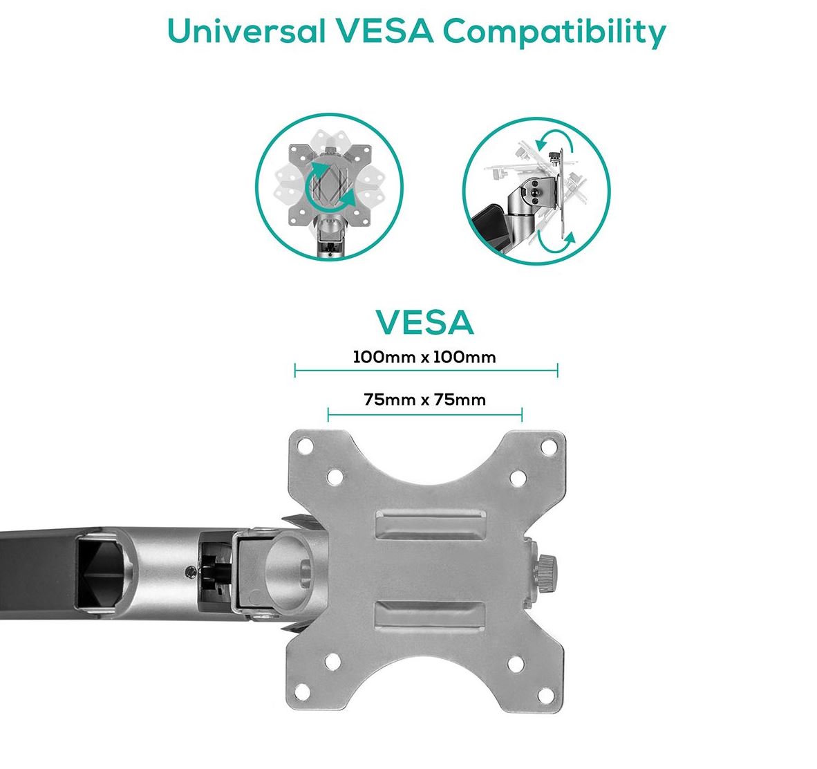 • 360° Rotary VESA Plate:Detachable, supports 75x75mm and100x100mm.