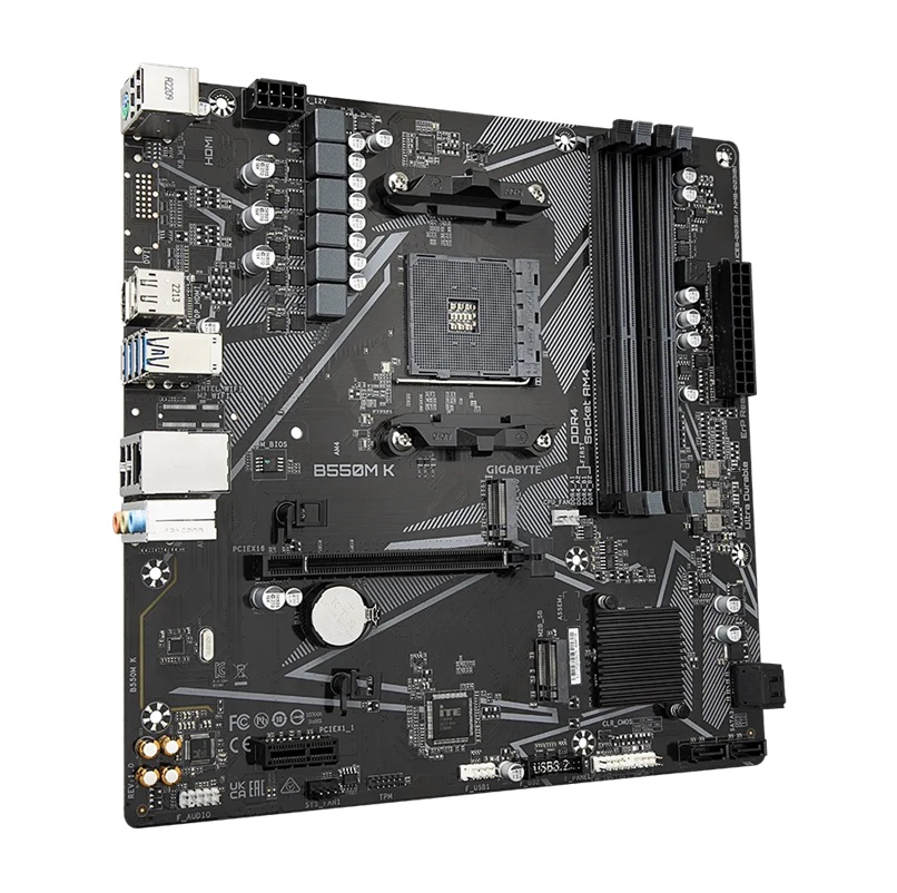 Gigabyte B550MK AMD AM4 M-ATX Motherboard 4x DDR4~128GB,1x PCIe x16, 1 x PCIe x1, 2x M.2, 4x SATA , 4x USB 3.2, 4x USB 2.0