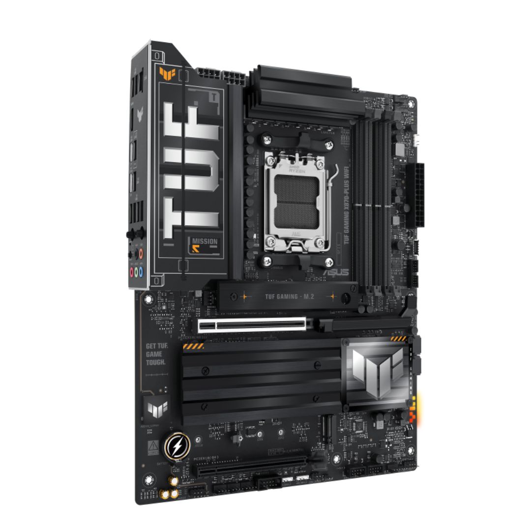 ASUS TUF GAMING X870-PLUS WIFI takes all the essential elements of the latest AMD Ryzen™ processors and combines them with game-ready features and proven durability. Engineered with military-grade components, an upgraded power solution and a comprehensive cooling system, this motherboard goes beyond expectations with rock-solid and stable performance for marathon gaming. TUF GAMING motherboards also undergo rigorous endurance testing to ensure that they can handle conditions where others may fail. This platform delivers the power and connectivity that advanced AI PC applications demand.