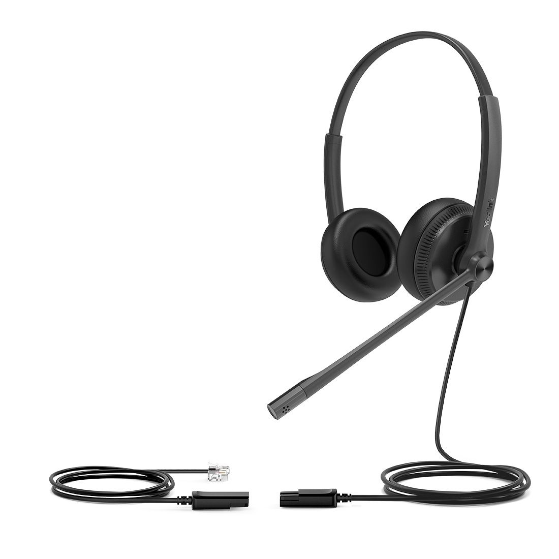 Yealink YHS34 Dual Wired Headset with QD to RJ Port, Noise-Canceling Headset, Binaural Ear, RJ9, QD Cord, Leather Ear Piece, Hearing Protection