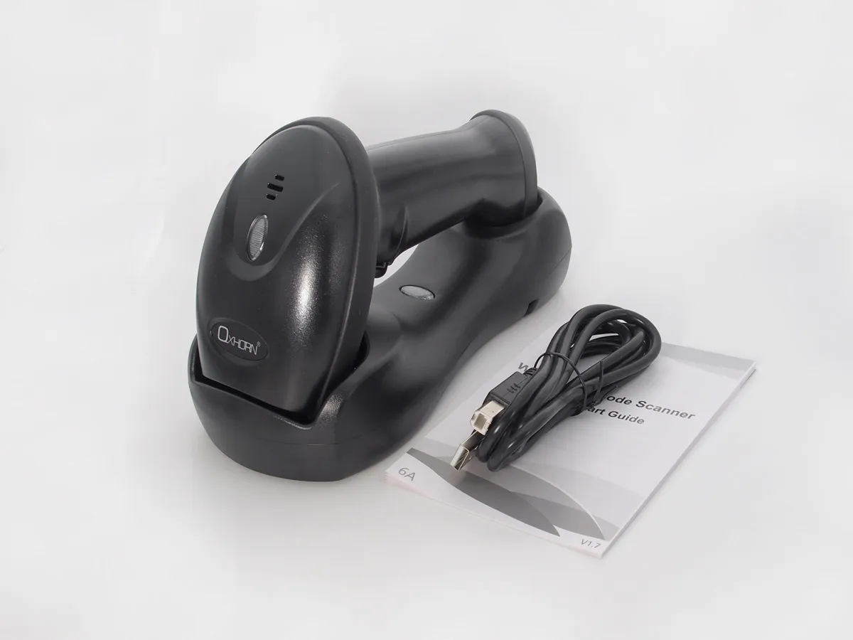 Oxhorn Wireless 2.4G Bluetooth 5.0 2D Barcode Scanner Commercial Grade USB Fast reliable Plug&Play 5V 1A Sensor Pixel rechargeable battery Black