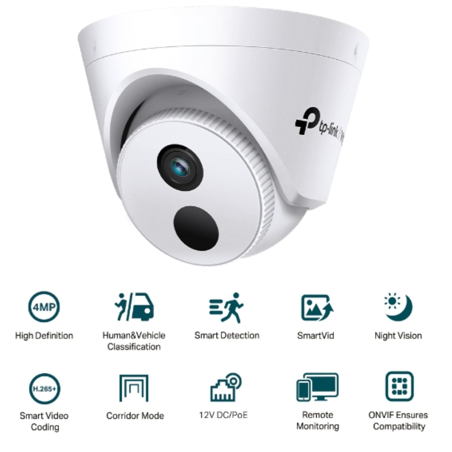 TP-Link VIGI 4MP C440I(4mm) IR Turret Network Camera,4mm Lens, Corridor Mode, Smart Detection,3YW