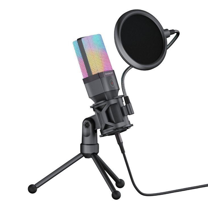 Simplecom UM650 USB Cardioid Condenser Microphone Gaming RGB Lights with Tripod & Pop Filter