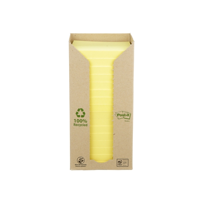 Post-It Notes 654-1T Recycled 76x76mm Yellow Pk16