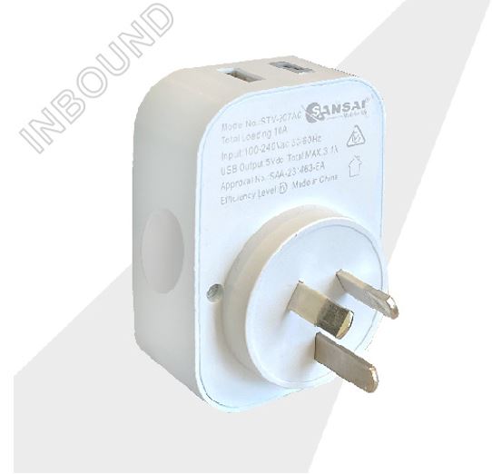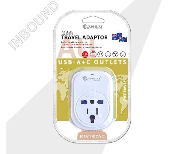 Sansai USB Travel Adaptor USB A + C 2xUSB Charging Outlets 100-240VAC 10A 2400W Compatible with plugs from many countries