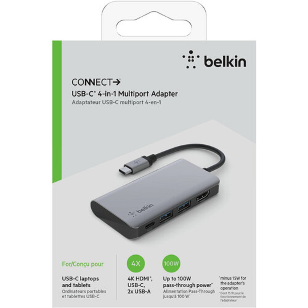 Belkin Connect USB-C 4-in-1 Multiport Adapter + USB-C Cable (13CM) - Space Grey (AVC006btSGY)