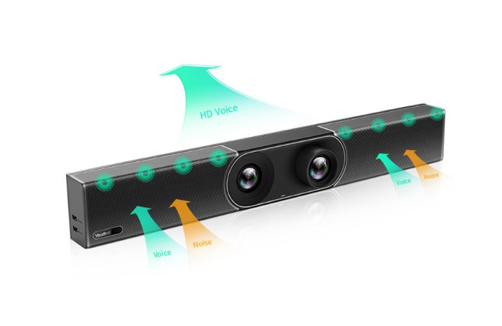 An 8-MEMS microphone array with sophisticated audio technology, such as Yealink’s noise-proof technology, brings an immersive audio experience in medium-sized rooms. Even in full-duplex audio mode, the A30-020 ensures that everyone can be heard in great detail.