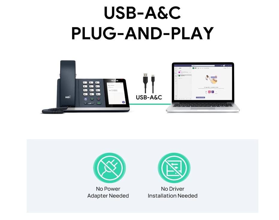 Yealink MP45 USB Teams Phone Desk Corded Phones for Work, Certified by Microsoft Teams Skype for Business System, Powered by Computer via USB-A/C